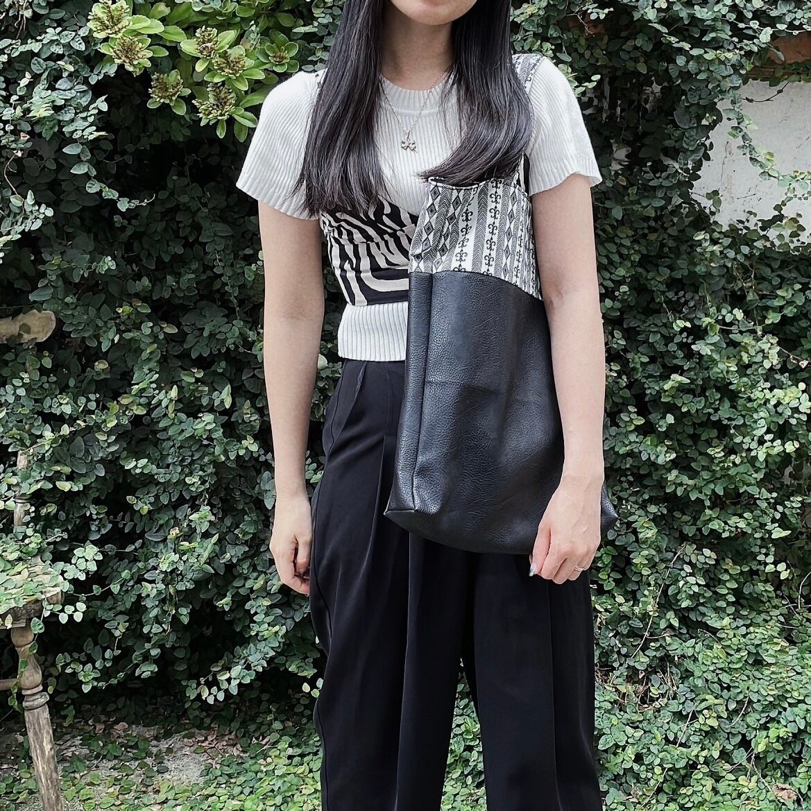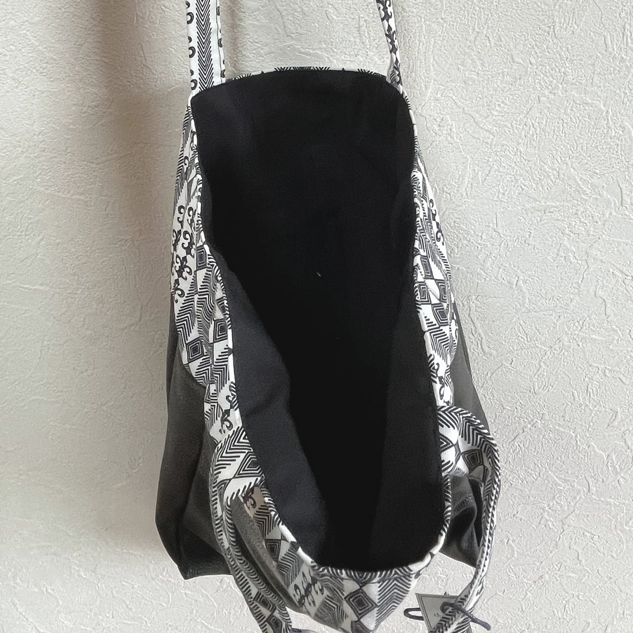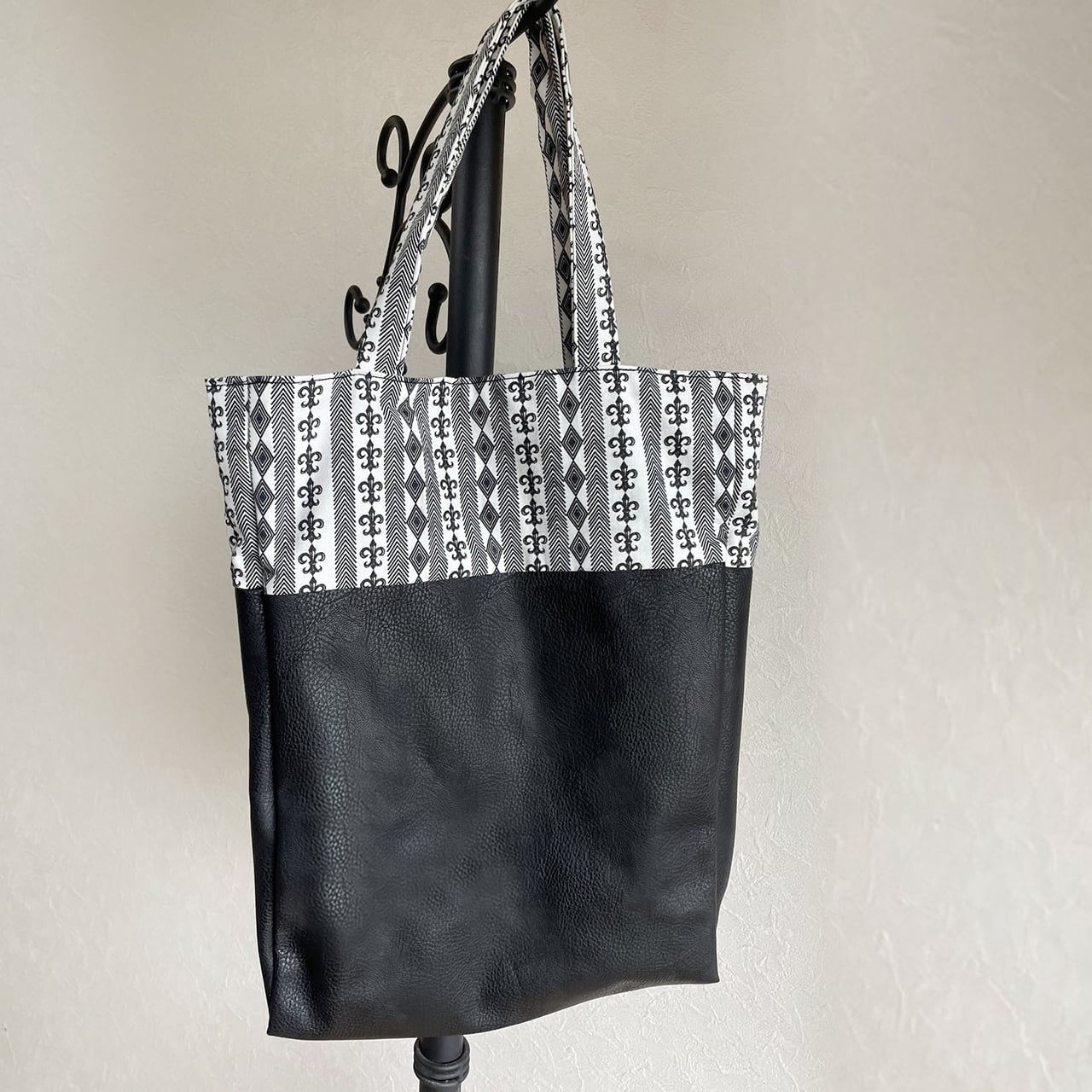 帆布生地にthorn createのオリジナルデザインをプリントし、下部は高級感のあるフェイクレザーを使用しております。