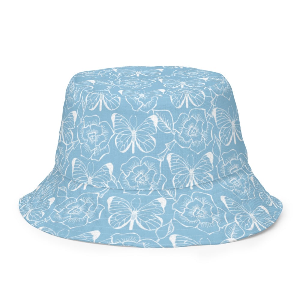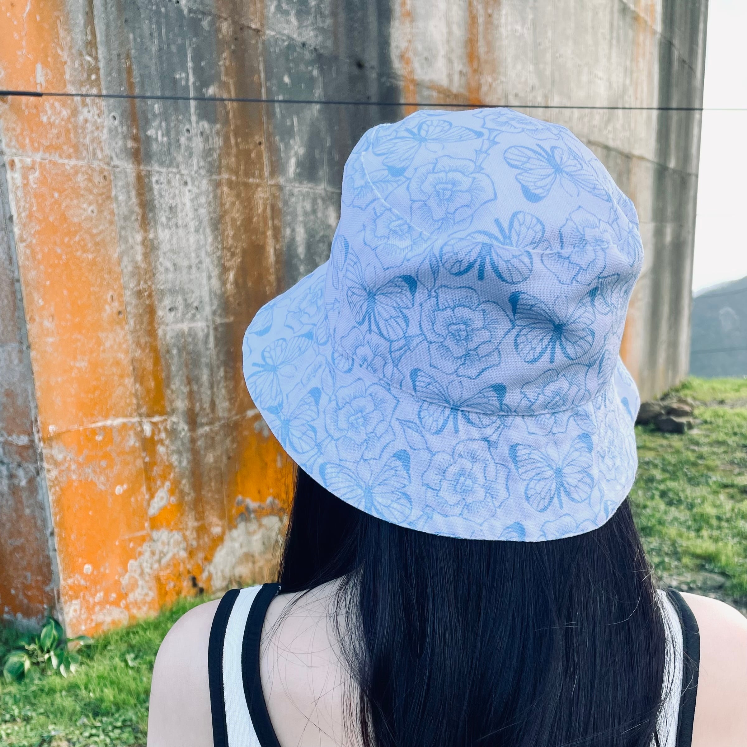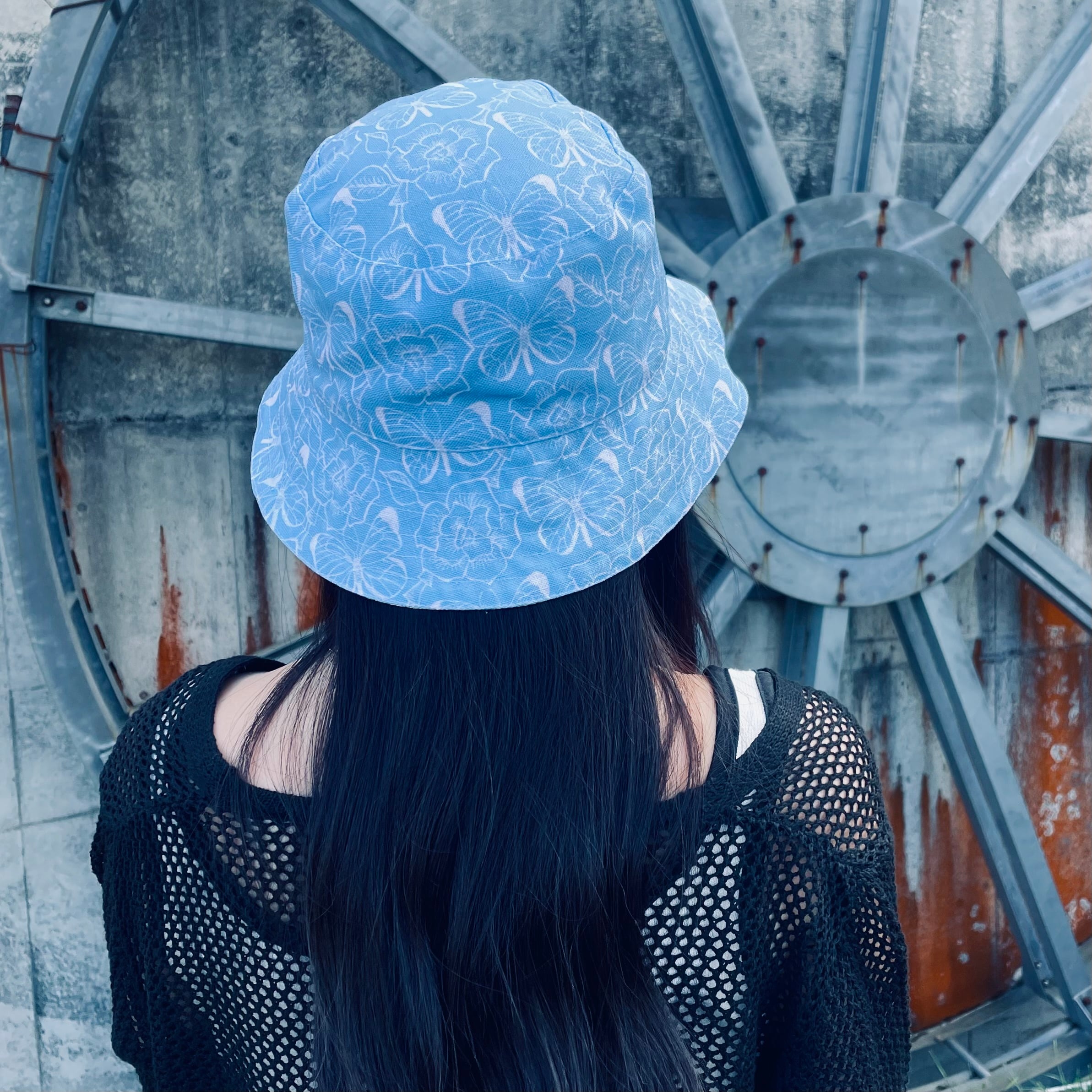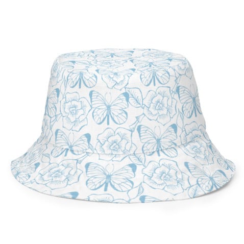 薔薇と蝶のオリジナルデザインのリバーシブルバケットハットです。