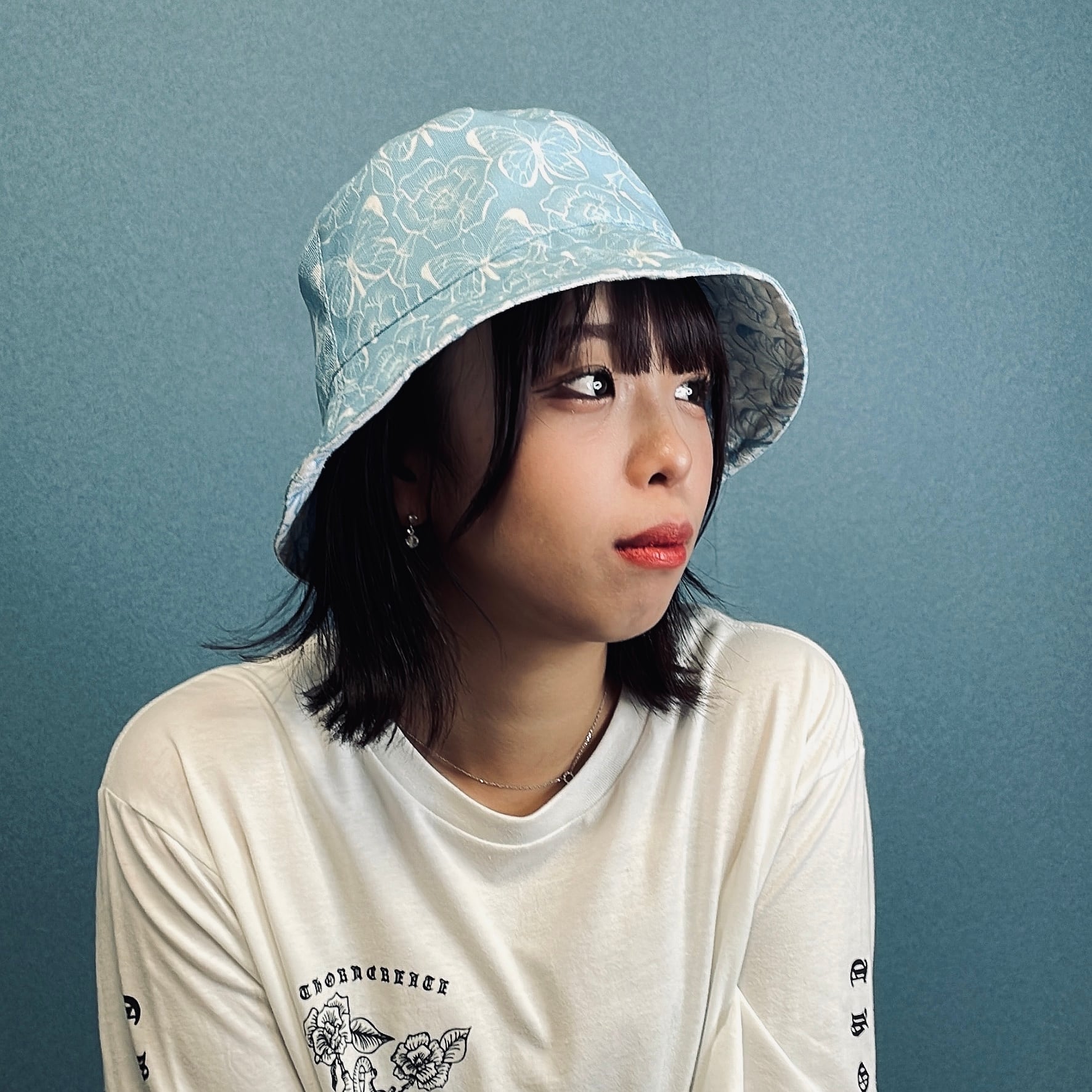 thorn create 薔薇&蝶柄リバーシブルバケットハット