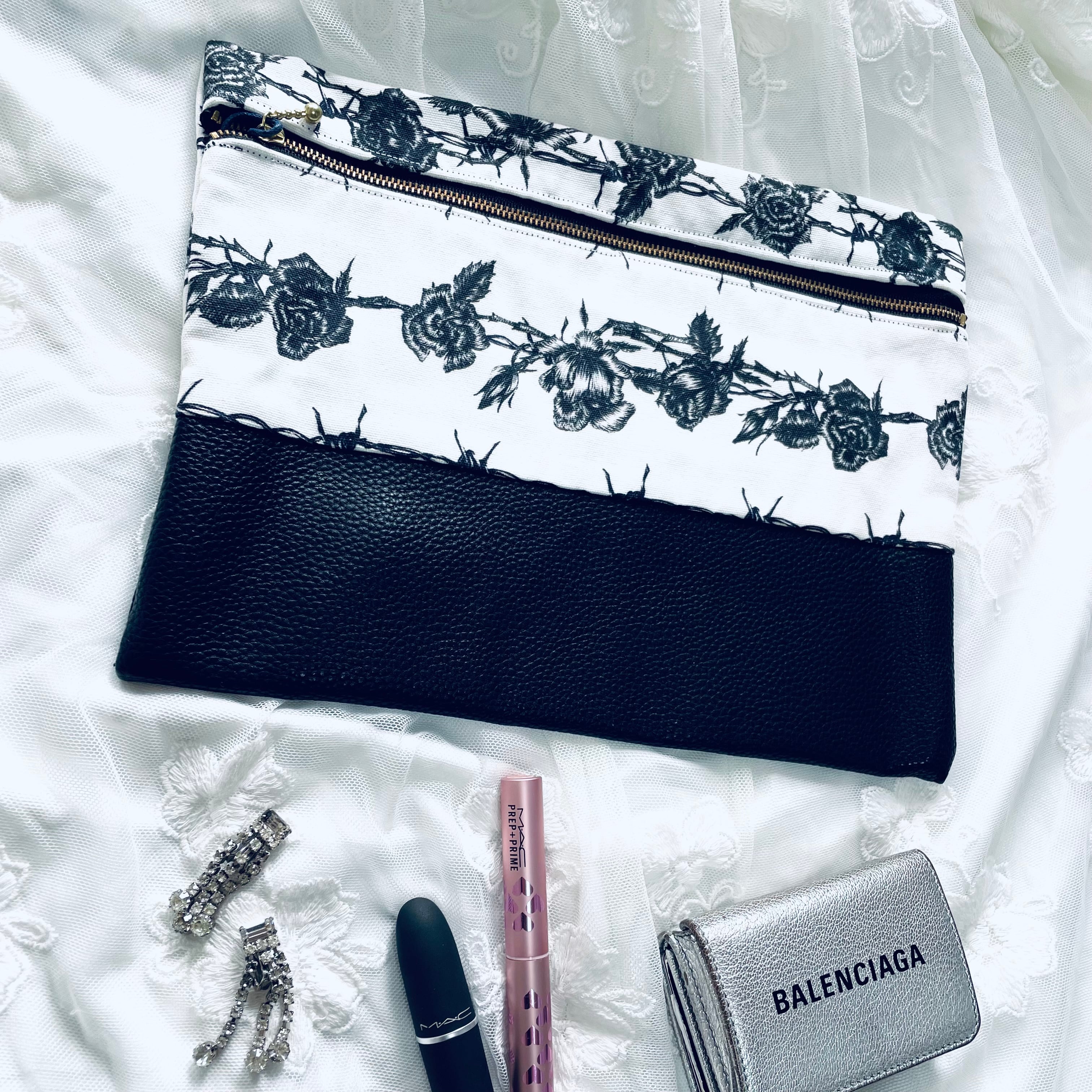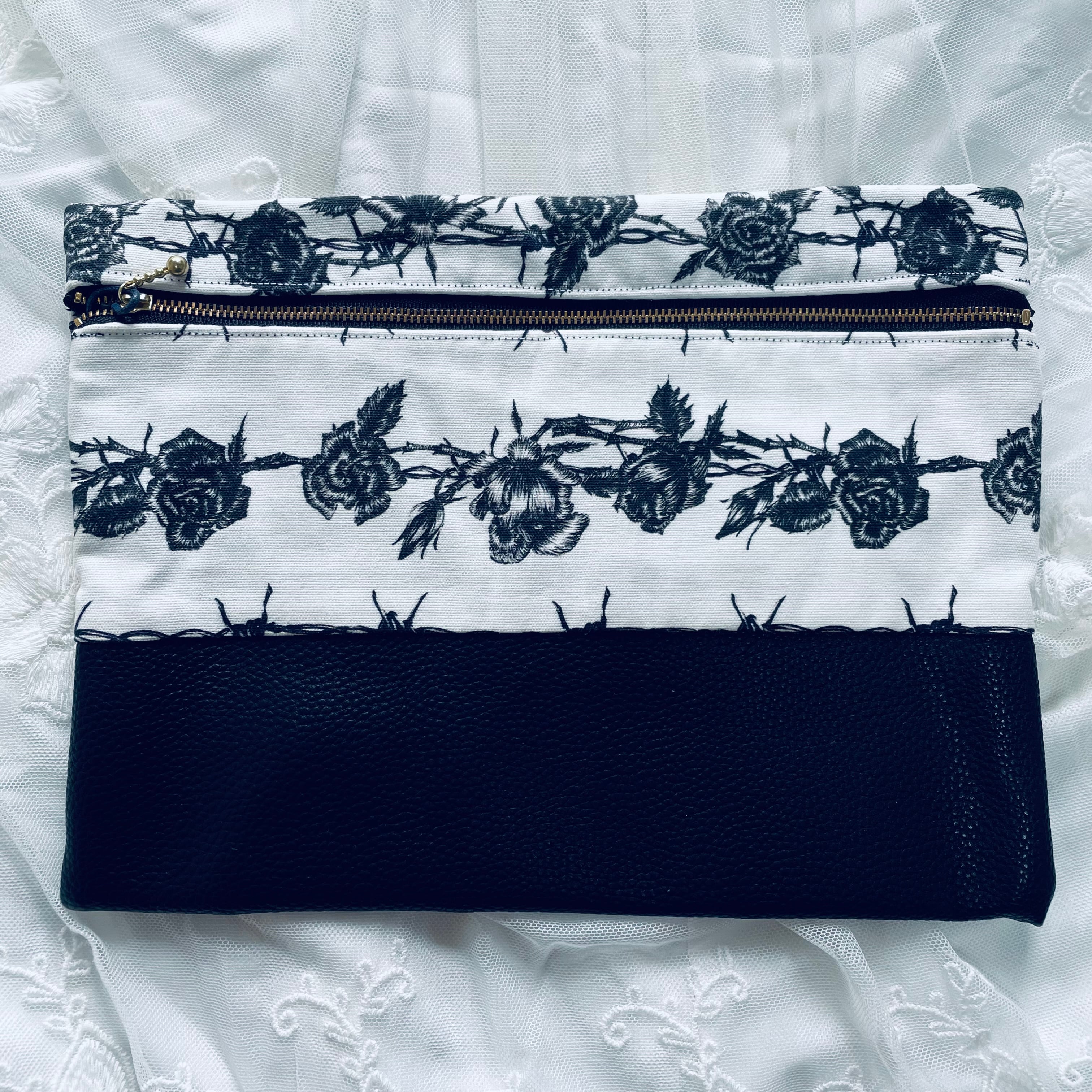 薔薇と有刺鉄線柄のオリジナルデザインのLサイズポーチです。