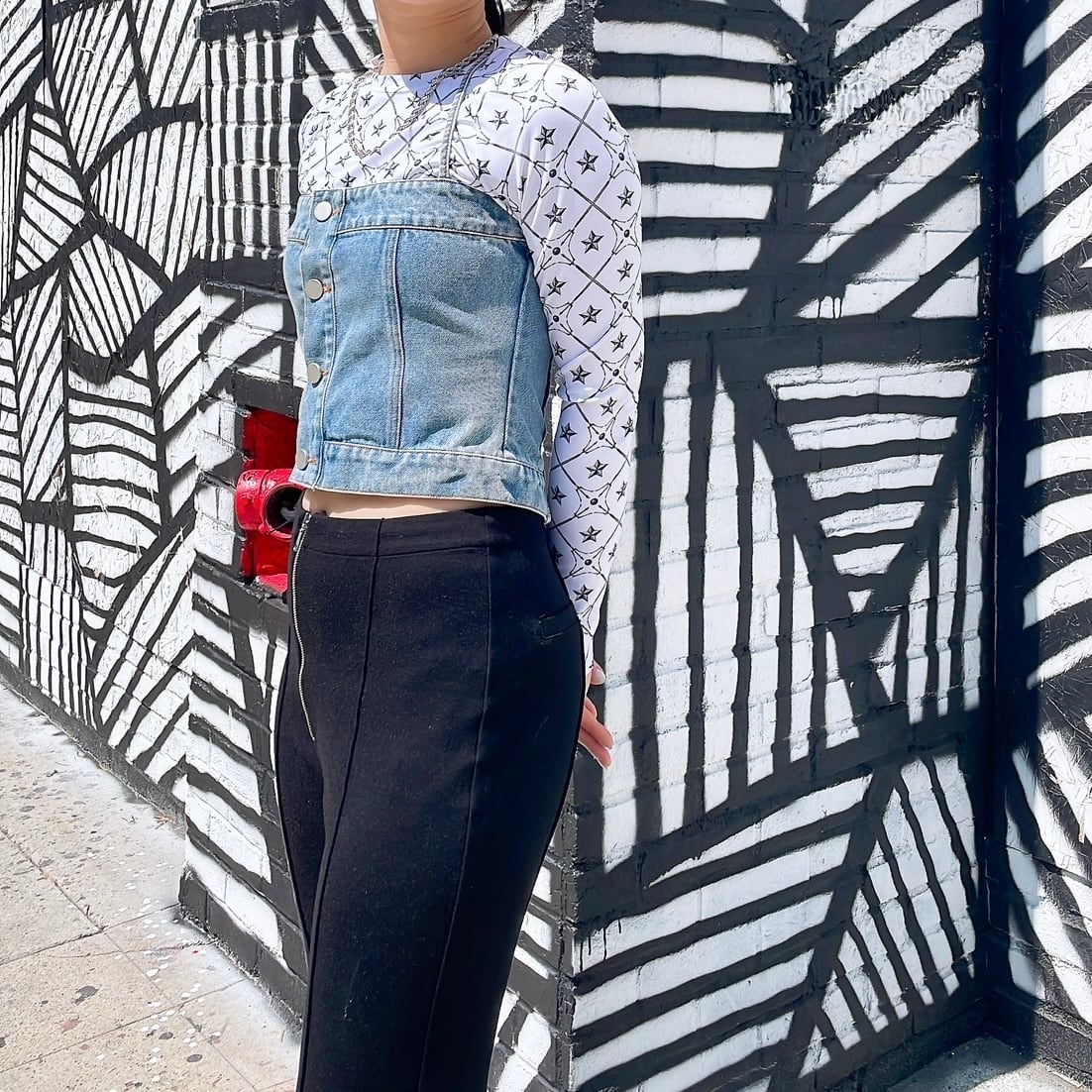 オリジナルデザインのクロップ丈のロングTシャツです。
