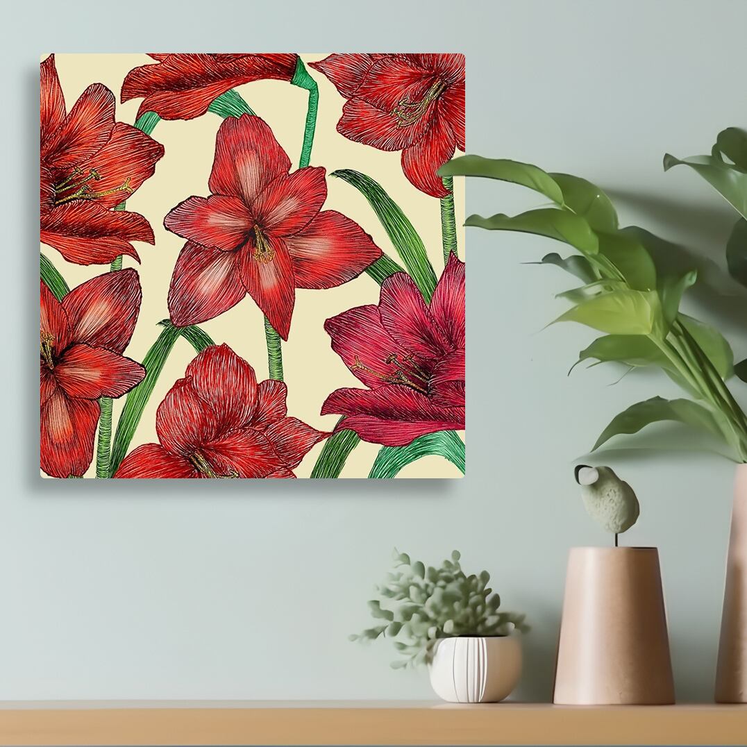 インテリアにおすすめのアマリリス柄ファブリックパネルです。