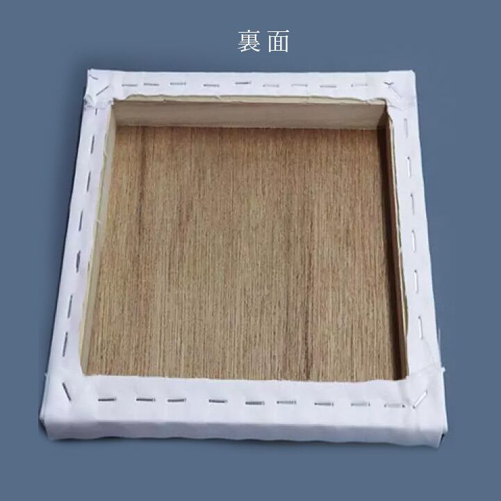 木の枠にキャンバスの生地を留めた状態でお届けします。
