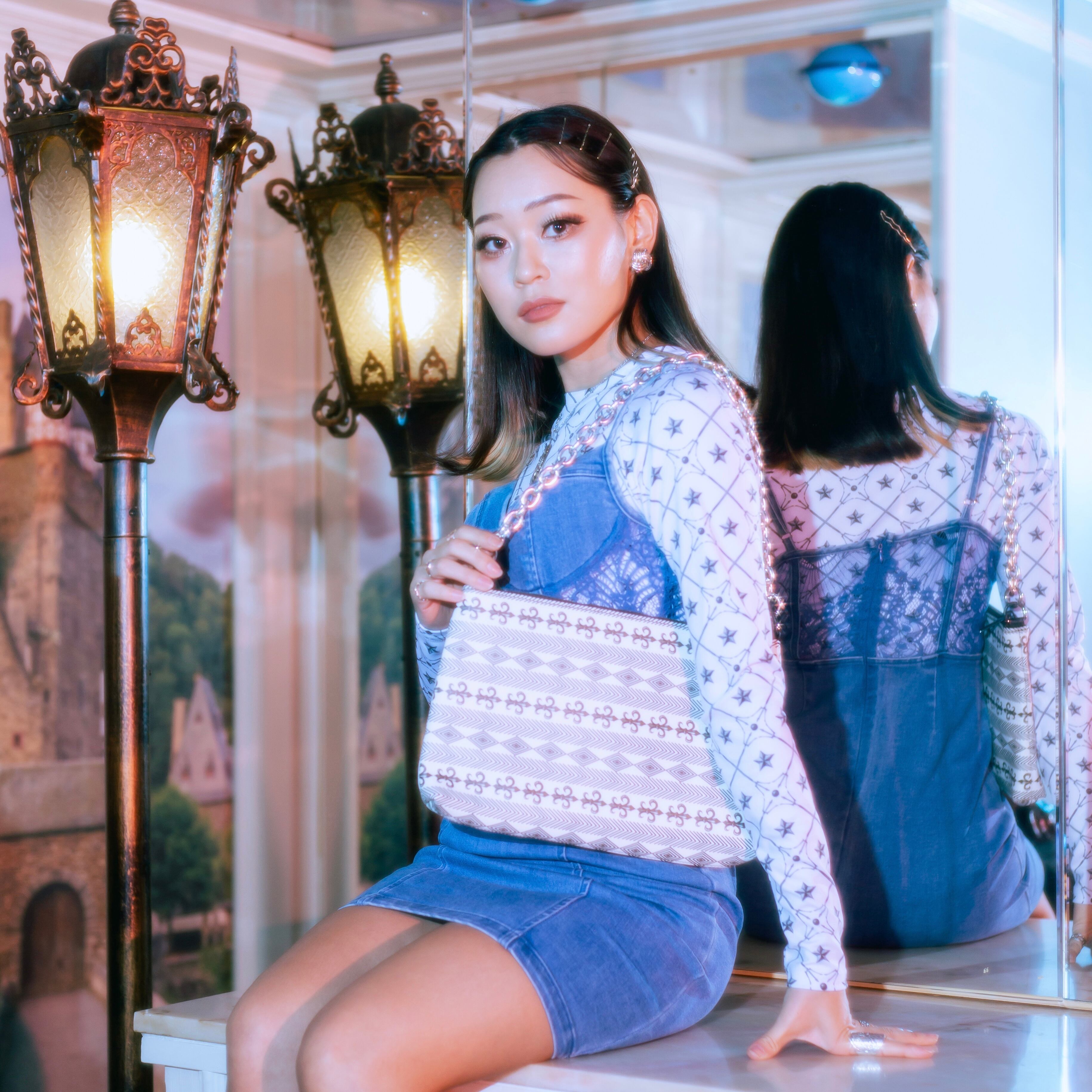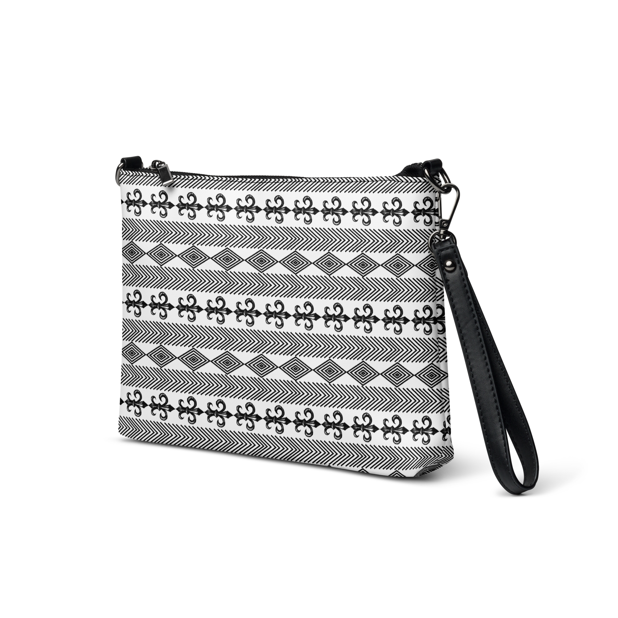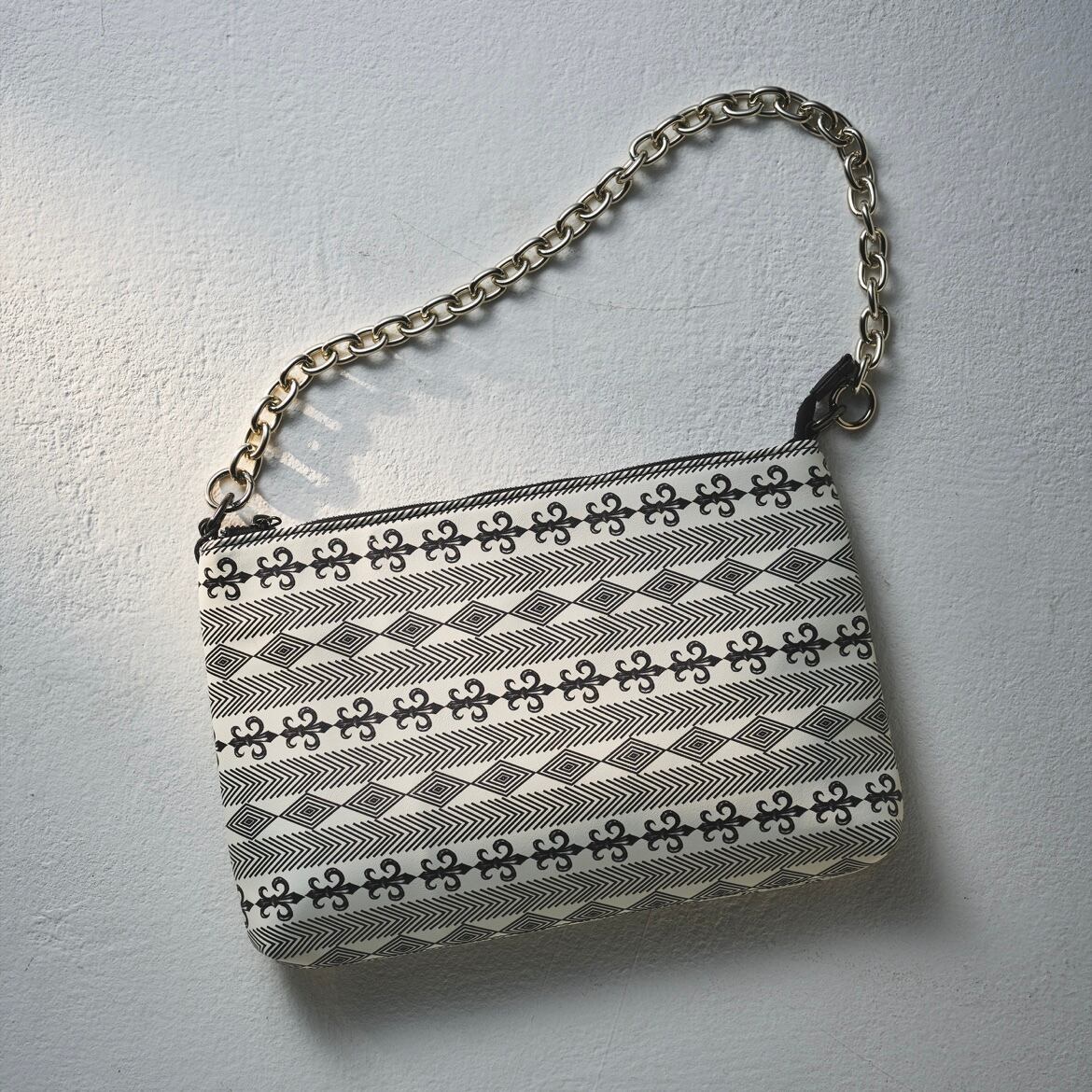 クラシックなシルエットが特徴のオリジナルショルダーバッグ。百合の紋章柄がスタイリッシュなデザイン。